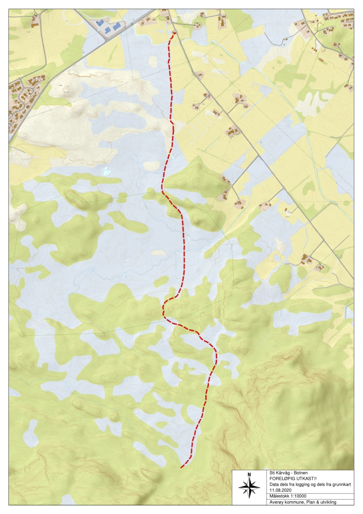 I enden av parkeringsplassen på Kiwi går en opp på gangveien og krysser hovedveien. Turstien starter der to planker er lagt over grøfta på motsatt side. Så er det bare å følge stien videre inn mot Botnen. Først går en langs Utheimselva gjennom skogen, før terrenget åpner seg mer opp. Heretter må noen myrpartier krysses, og en må være forberedt på at det kan være vått etter regnvær. Det er lagt bruer over bekker, og enkle klopper i de våteste partier. Botnen ligger innerst i dalen, og her er det plassert en turkasse. Følg samme vei tilbake, men pass på å velge riktig vei. Det er to veiskiller som en kanskje ikke har lagt merke til på vei innover mot Botnen. Det første ikke langt unna turkassa, mens det andre mot turens slutt. Ta til venstre begge ganger. Turen går gjennom et naturreservat, så sett av god tid til å studere dyre- og plantelivet. Turen er finest å gå i tørre perioder eller når det er barfrost. Om snø på vinterstid, kjøres det opp skiløyper. Dette annonseres på facebook og Kårvåg IL sin nettside.